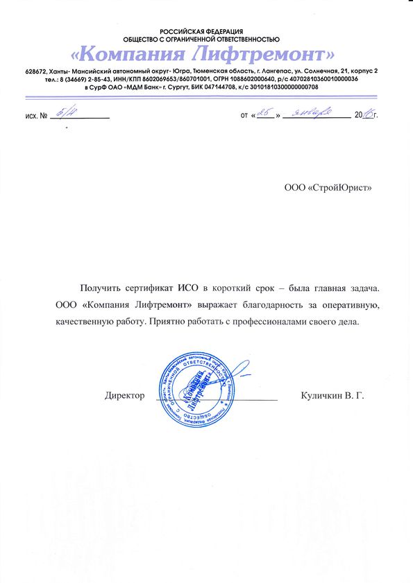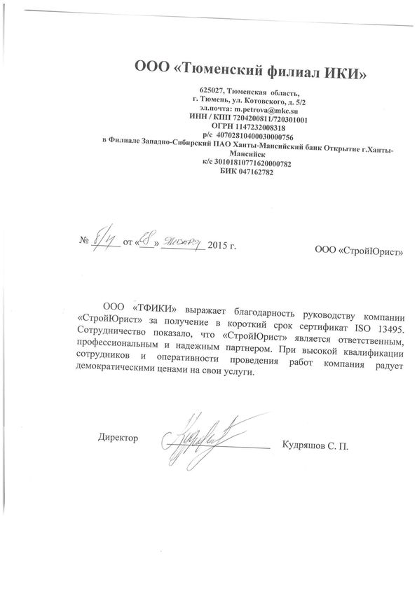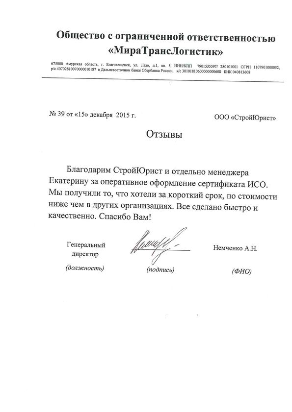 Отзывы клиентов "СтройЮрист" по ISO в Боровичах