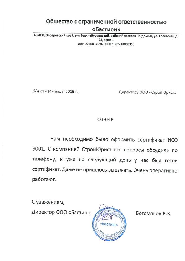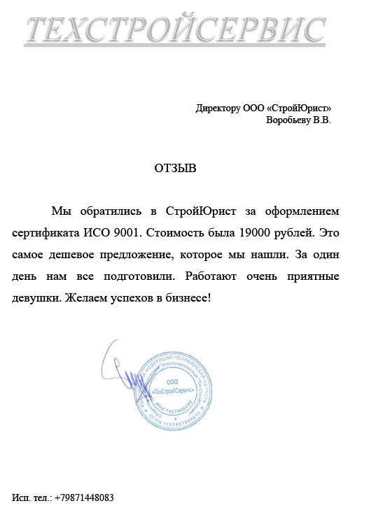 Отзывы клиентов "СтройЮрист" по ISO в Боровичах