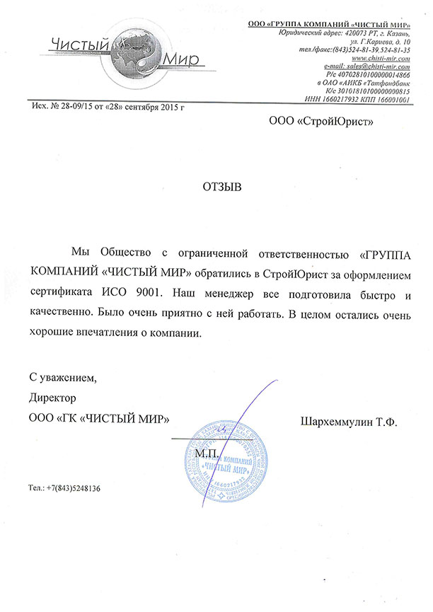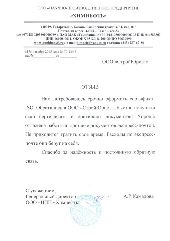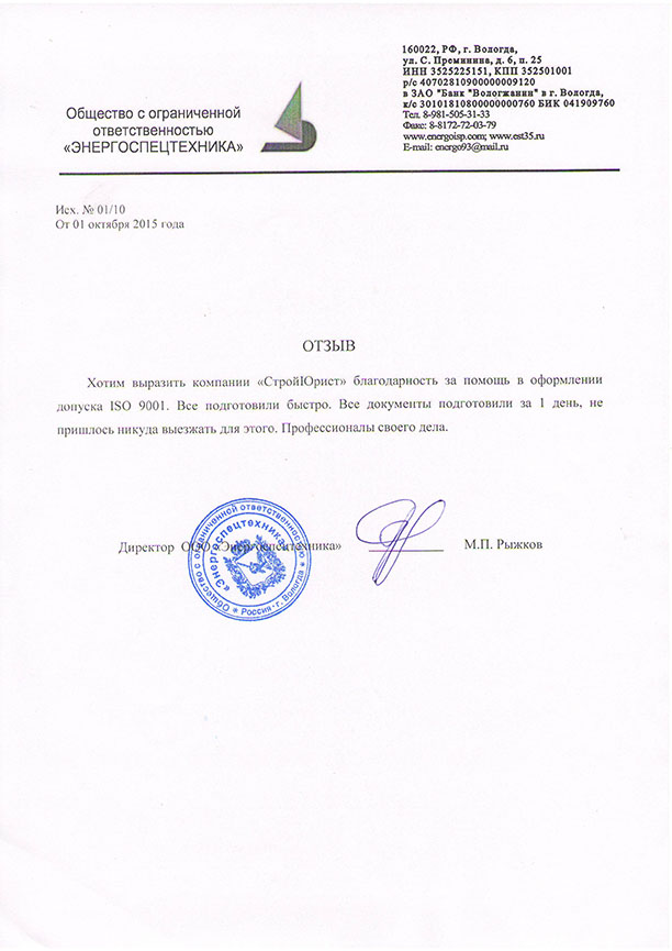 Отзывы клиентов "СтройЮрист" по ISO в Боровичах