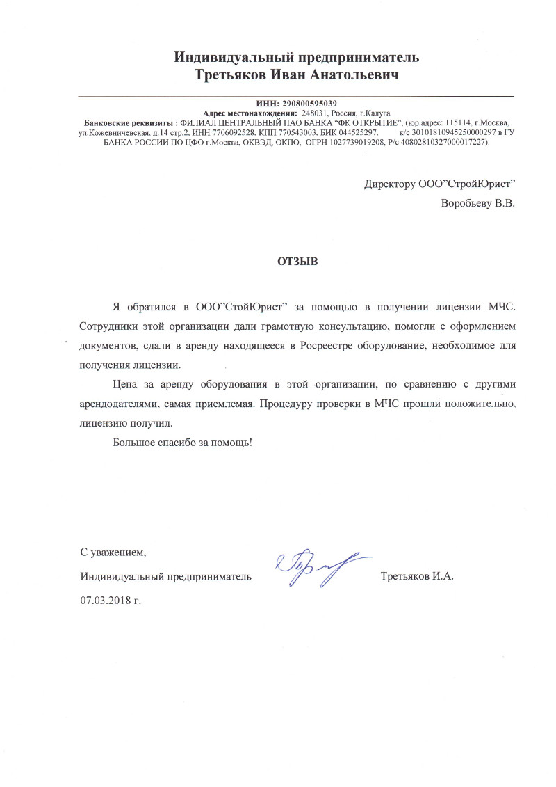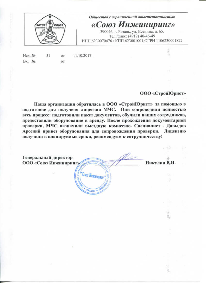 Отзывы клиентов "СтройЮрист" по лицензированию МЧС в Боровичах