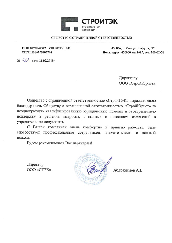Отзывы клиентов "СтройЮрист" по регистрации фирм в Боровичах