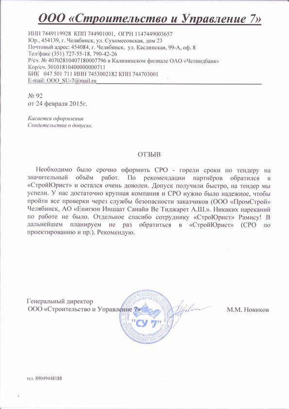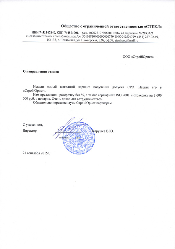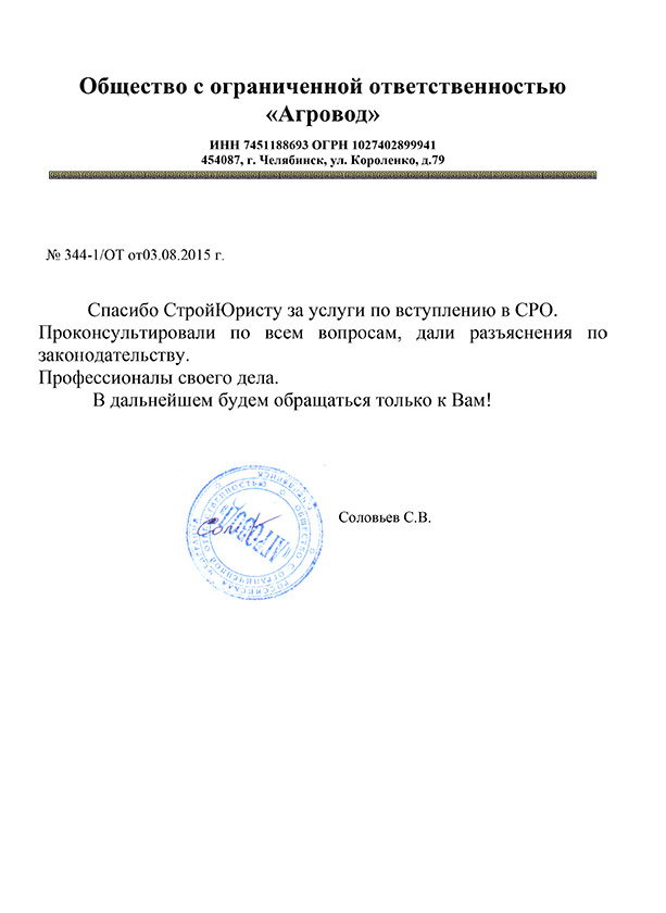 Отзывы клиентов "СтройЮрист" по вступлению в СРО в Боровичах