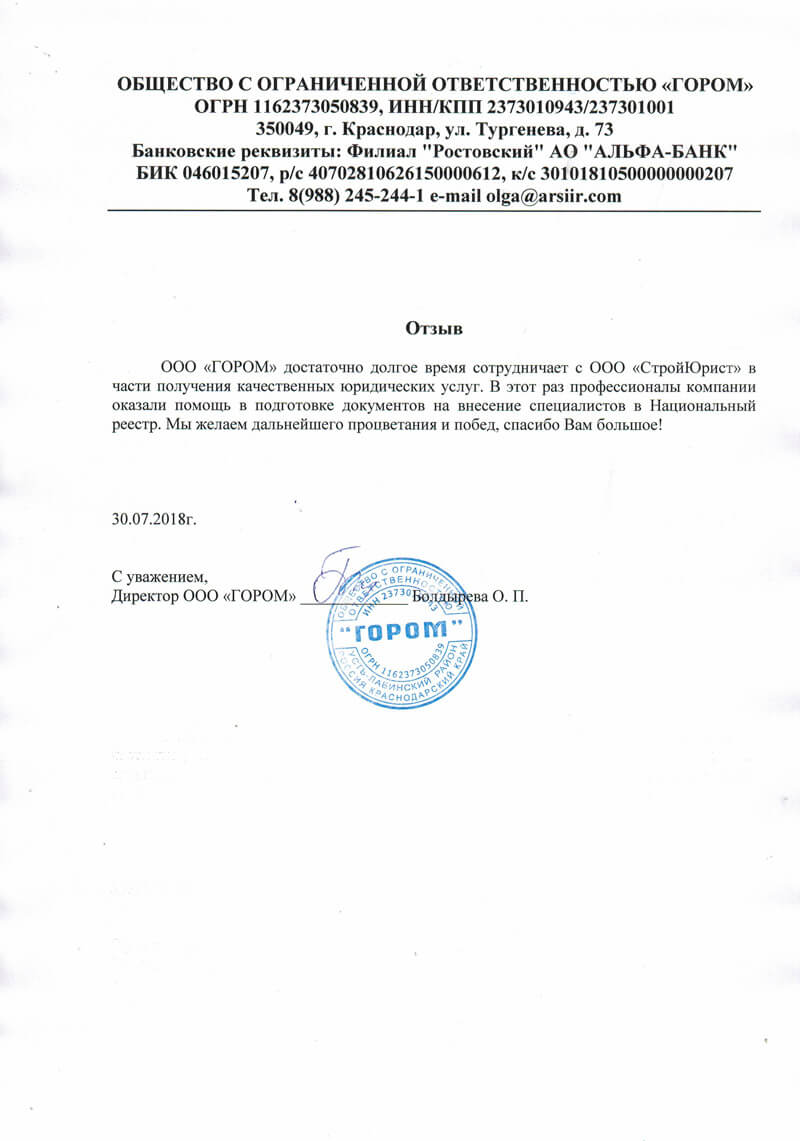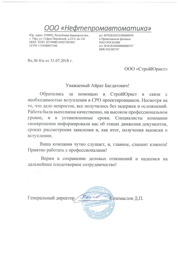 Отзывы клиентов "СтройЮрист" по вступлению в СРО в Боровичах